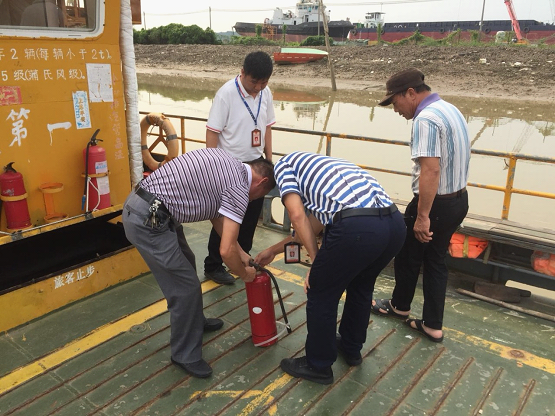 ▲檢查橫山渡口渡船,確保消防設施齊全有效