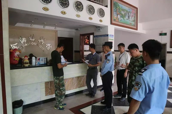 ▲檢查賓館消防工作情況