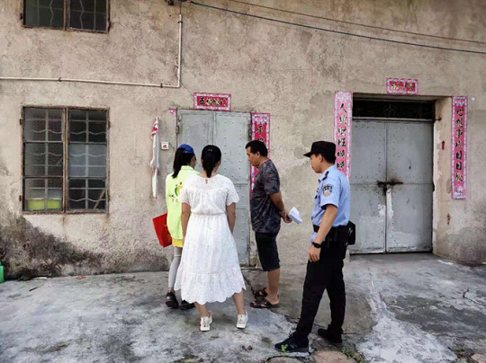 ▲鎮禁毒辦人員和社工向村委會了解蘇某相關情況