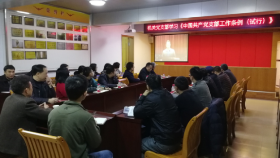 2019年1月7日,市城管局機關黨支部書記李健忠同志主持召開黨員大會,組織專題學習《中國共產黨支部工作條例(試行)》,做到先學一步、學深一層。會上,黨員們認真觀看省委黨校梁道剛教授舉辦的《中國共產黨支部工作條例(試行)》培訓課程視頻,再由支部書記帶領全體黨員共同學習了《條例》全文,并結合工作實際進行了深入討論。