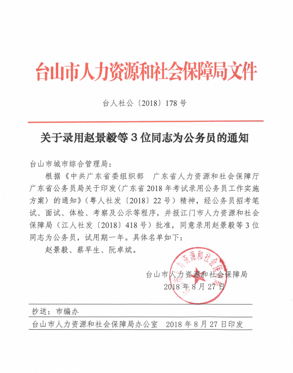 關于錄用趙景毅等3位同志為公務員的通知