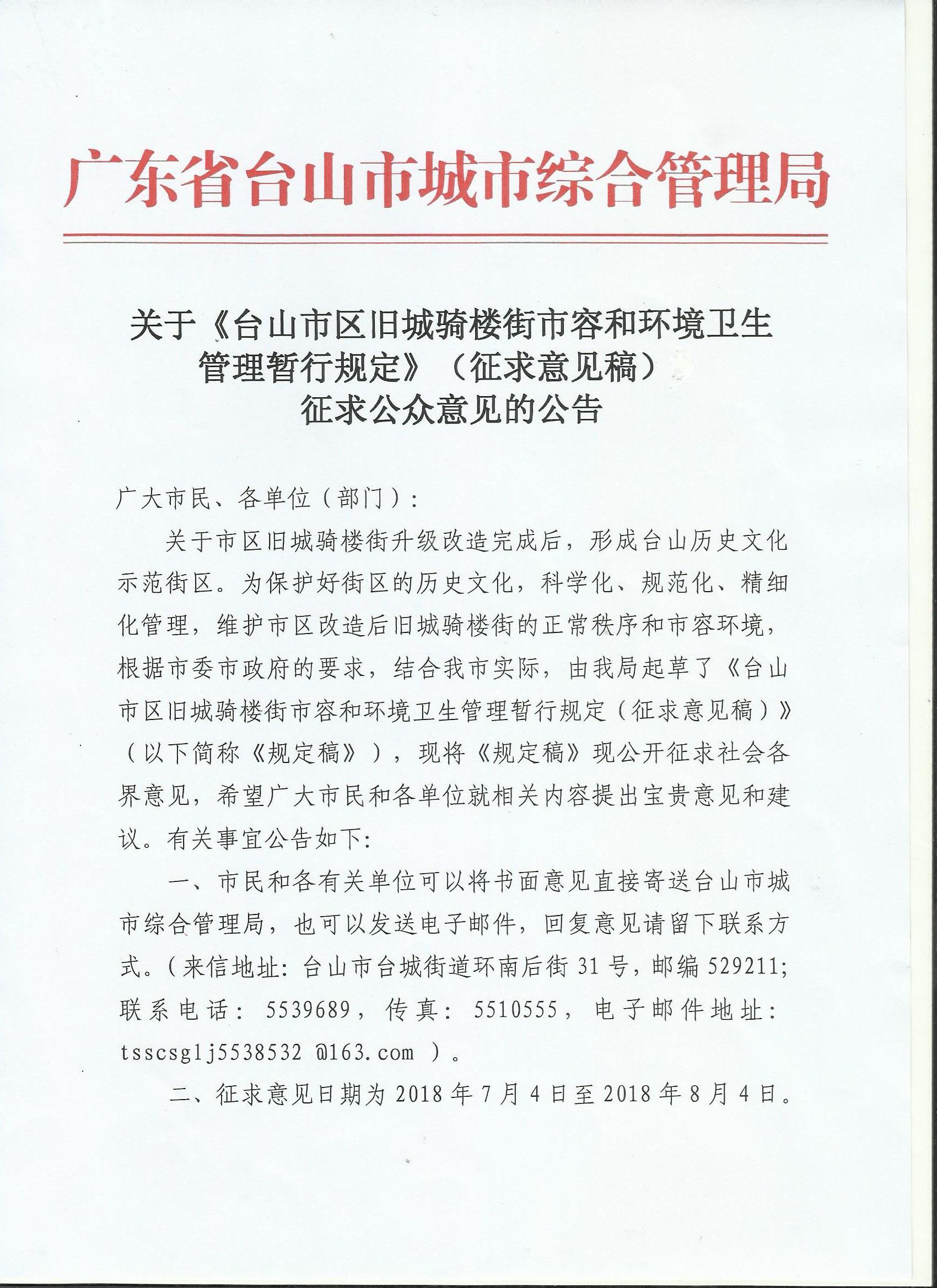 關于《臺山市區舊城騎樓街市容和環境衛生管理暫行規定》