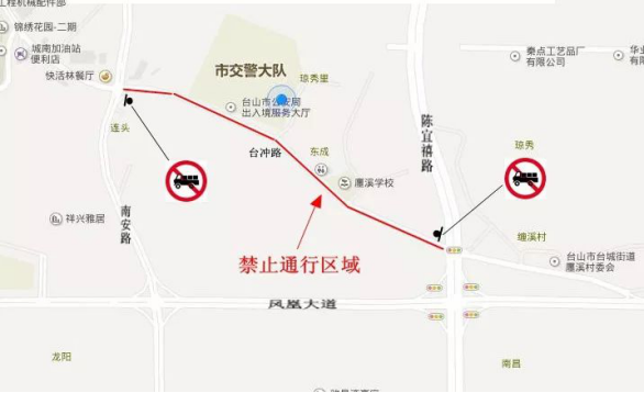 (一)臺沖路南安路至陳宜禧路路段全天禁止中型以上貨車通行;