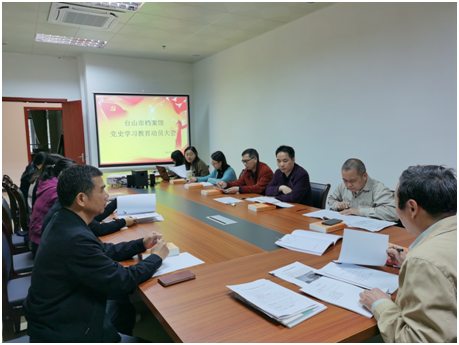 會議強調,一要強化組織領導,確保學習質量。成立以館長(主任)為組長,副館長為副組長,各股室負責人為成員的臺山市檔案館黨史學習教育領導小組,制定學習方案,切實把黨中央部署和要求落到實處。二要創新利用資源優勢,豐富學習形式。充分利用我館黨史編研成果,深化學習《中國共產黨廣東地方史(第一卷)》,為黨員干部訂購《中國共產黨簡史》等學習資料,確保學習材料到位;以黨員大會、主題黨日活動為契機,組織集中學習研討,通過專家授課、參觀紅色教育基地、觀看黨史教育影片、鼓勵黨員干部參與黨史征文投稿活動等方式進行教育學習,做到學史明理、學史增信、學史崇德、學史力行,引導黨員干部不忘初心、牢記使命,務實開拓進取,為實現“十四五”開好局、起好步不懈奮斗,以精品力作和工作實績向黨的百年華誕獻禮。三要踐行使命履職擔當。緊緊圍繞慶祝中國共產黨成立100周年,貼近貼緊貼實推進黨史編研工作,結合巡察反饋意見建議,將《中國共產黨廣東省臺山歷史第二卷(1949-1978)》編纂工作放在首要任務,按照上級黨史部門的審稿意見盡快修改完善送審稿。四要牢記宗旨學以致用。黨員干部要將學習黨史同總結經驗、觀照現實、創新開展黨史地志工作結合起來,同解決實際問題結合起來,切實把學習成效轉化為工作成效。