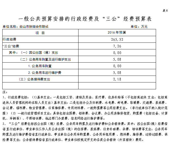 八、一般公共預算安排的行政經(jīng)費及“三公”經(jīng)費預算表