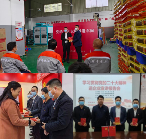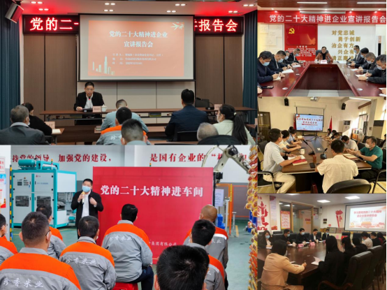 3.各黨支部開展“集體課堂”宣講。下屬各基層黨組織書記依托學習研討會、“三會一課”、主題黨日活動等多種載體,采取小分隊宣講、上門走訪送學等靈活多樣、黨員群眾喜聞樂見的方式,到車間、下屬二級企業開展“集體課堂”講學,深入解讀黨的二十大精神實質,同黨員職工面對面談學習體會、談思想認識、談貫徹落實,把生產車間變成了生動活潑的“學習課堂”。截至目前,下屬各基層黨組織開展黨的二十大精神宣講8場,確保100%覆蓋全體黨員。