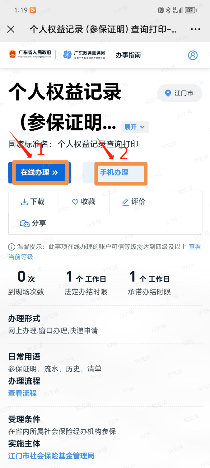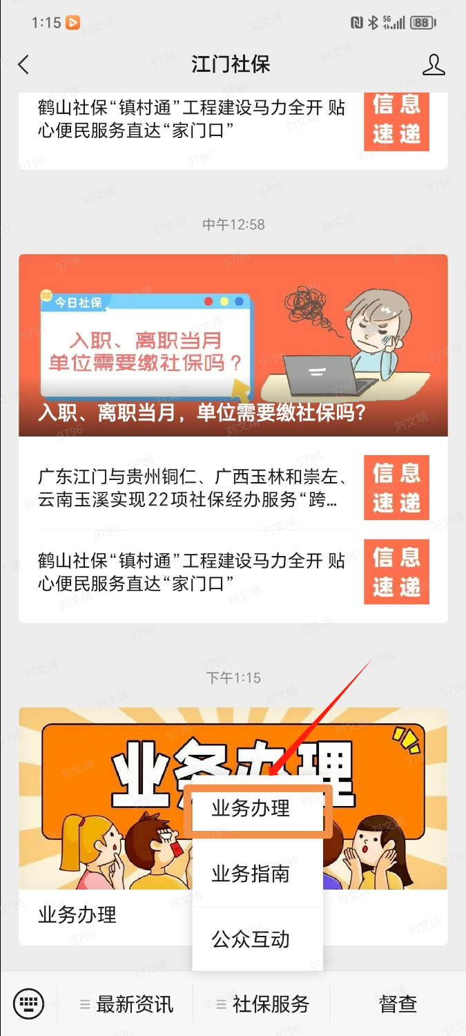 參保人現(xiàn)可在江門社保微信公眾號的“業(yè)務(wù)辦理”功能