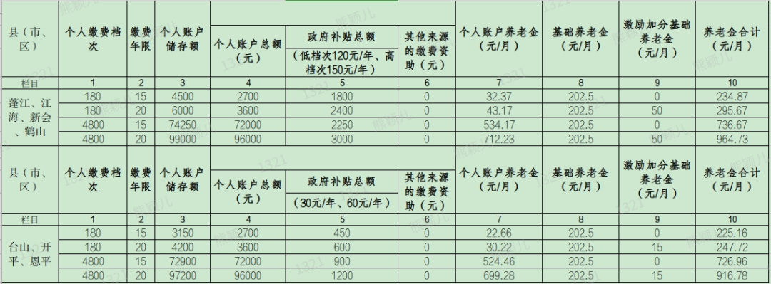 1.居保基礎養老金按全市最低標準202.5元計算。