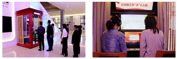 研討結束后,黨員干部們前往智慧圖書館開展誦讀活動。在紅色悅讀亭,黨員們戴上耳機、挑選配樂,激情滿懷地誦讀黨的二十大報告金句,認真領悟每一句“金句”蘊含的精神實質和思想內涵,感悟習近平總書記的大國情懷、為民情懷,切實營造線上線下相融共學氛圍。