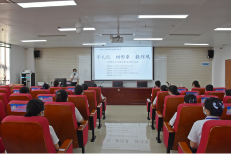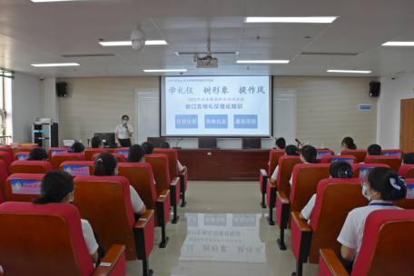 培訓中,市行政服務中心協調部講師容晶晶結合文明禮儀常識及日常工作實際,通過豐富的案例、生動的表述,詳細講解了儀容儀表、形體儀態、服務用語等方面內容。