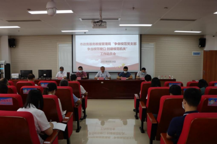 為進一步提升機關和窗口工作質量和服務水平,營造“崇尚先進、爭當先進、崇尚模范、爭做模范”的濃厚氛圍,努力創建“講政治、守紀律、負責任、有效率”的模范機關,8月17日,市政數局召開“爭做模范黨支部 爭當模范窗口 創建模范機關”工作動員會,全體黨員干部、窗口工作人員代表共40多人參加。